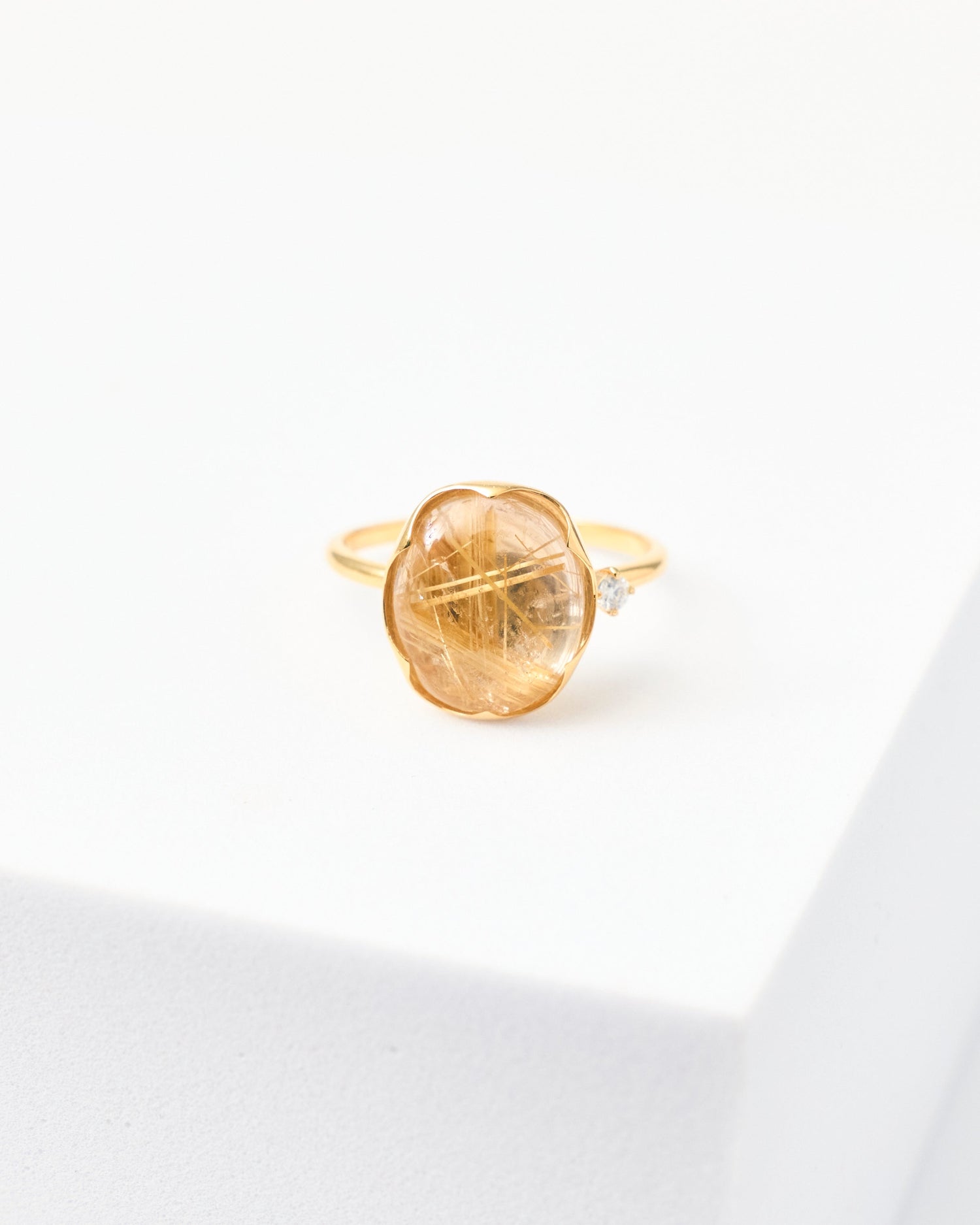【フリルフレーム ルチルリング】 高揚感をテーマにした「ユーフォリア」シリーズ。 ルチルクォーツ囲むフレームには、「フリル」をイメージした柔らかな揺らぎを持たせ、立体的でやさしい表情に仕上げています。 一つ一つ趣が異なるルチルクォーツから、お好きなものをお選びください。 ※石をクリックすると商品ページが開きます。