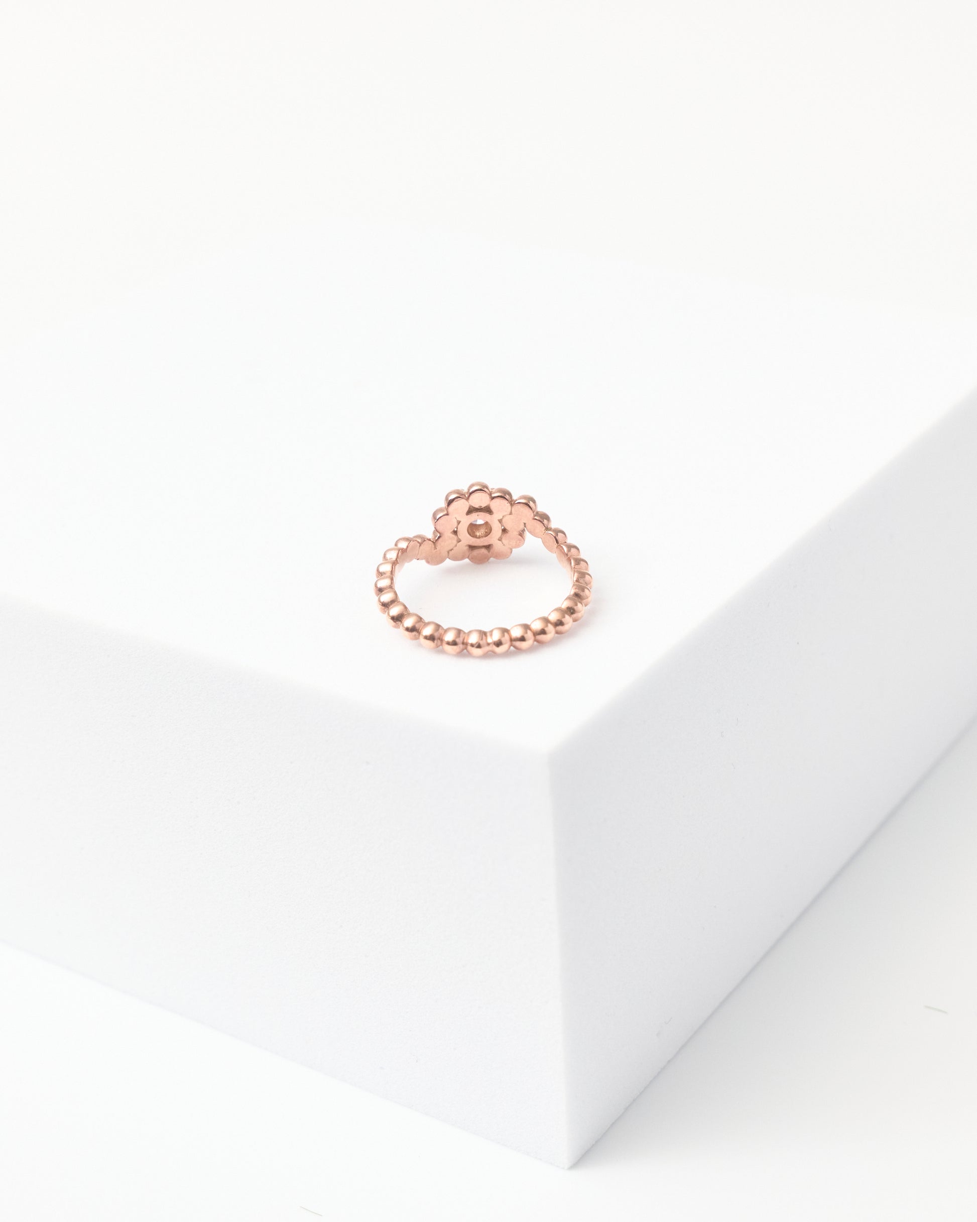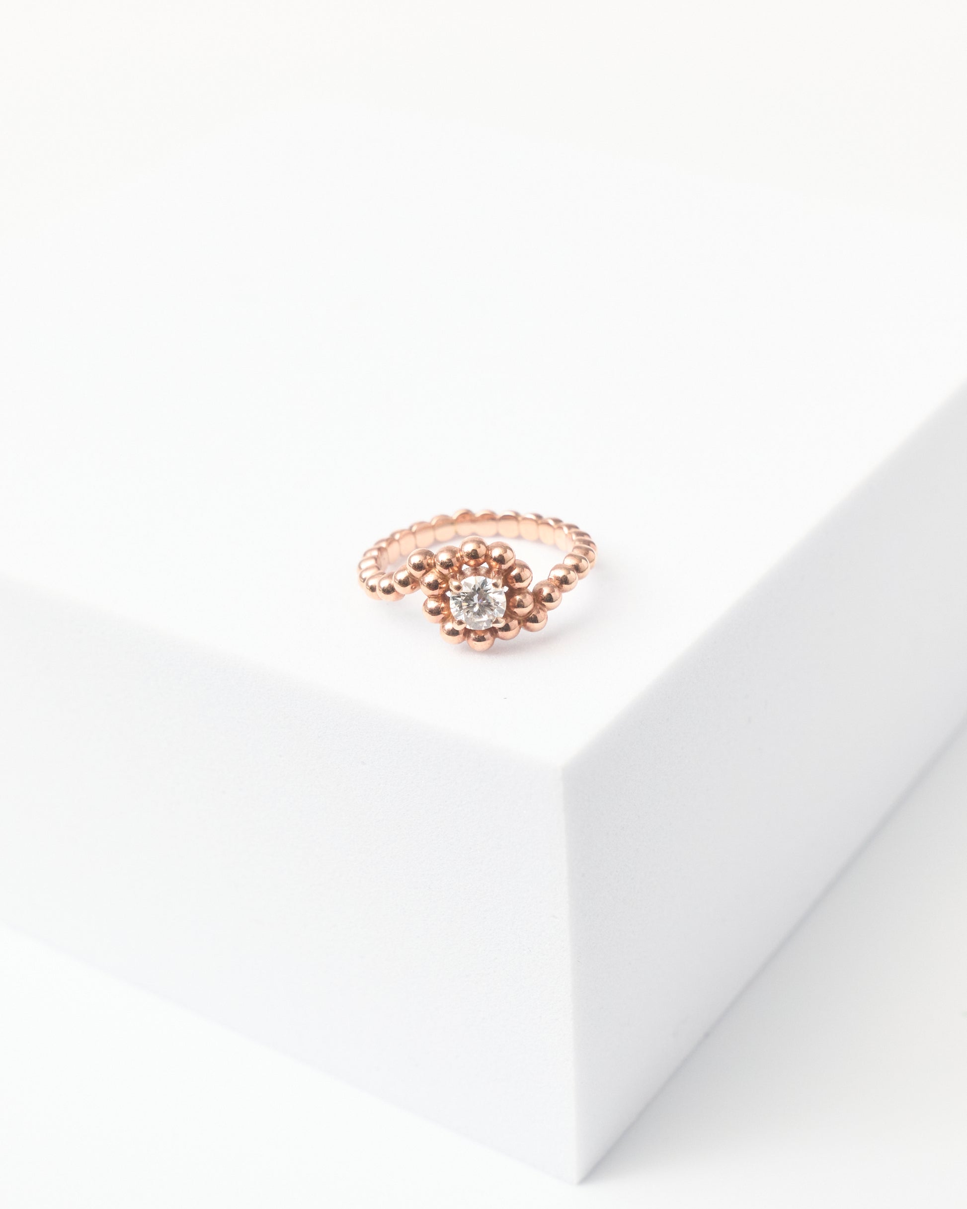 リングは、モチーフに加えて、ウデの部分にも丸が連なるデザイン。