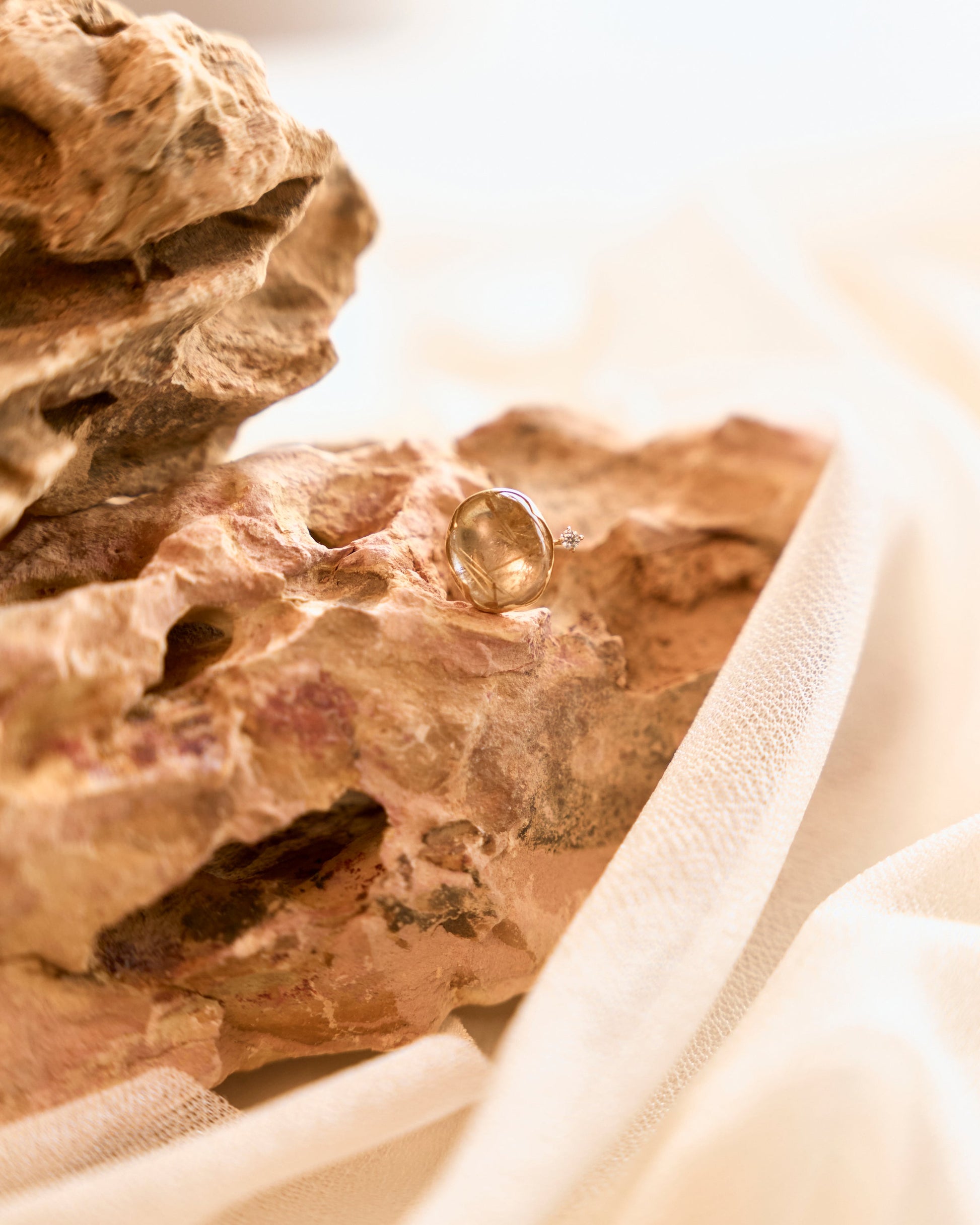 本作では、ルチルの透明感と繊細な針模様を最大限に生かすよう、シンプルで上質なデザインに仕立てました。