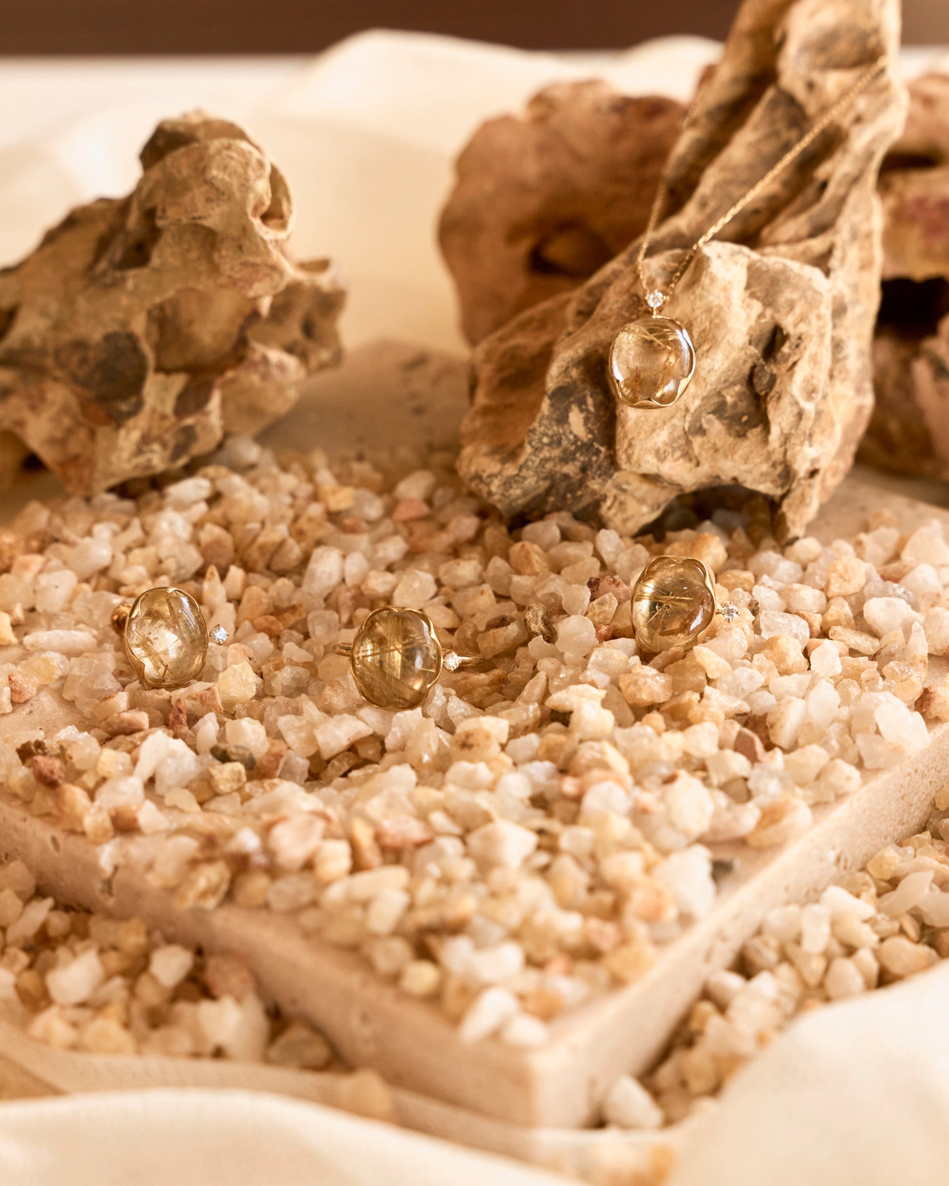 「ユーフォリア」シリーズより、天然石ルチルクォーツを用いたピアスが登場しました。