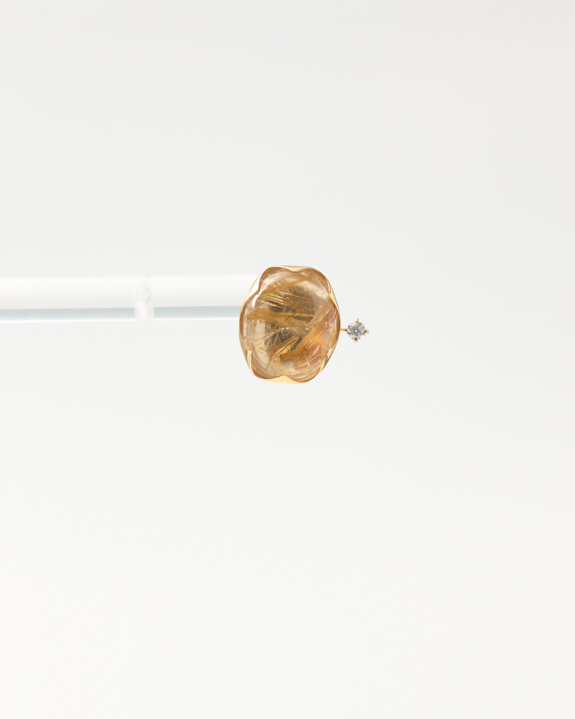 本作では、ルチルの透明感と繊細な針模様を最大限に生かすよう、シンプルで上質なデザインに仕立てました。